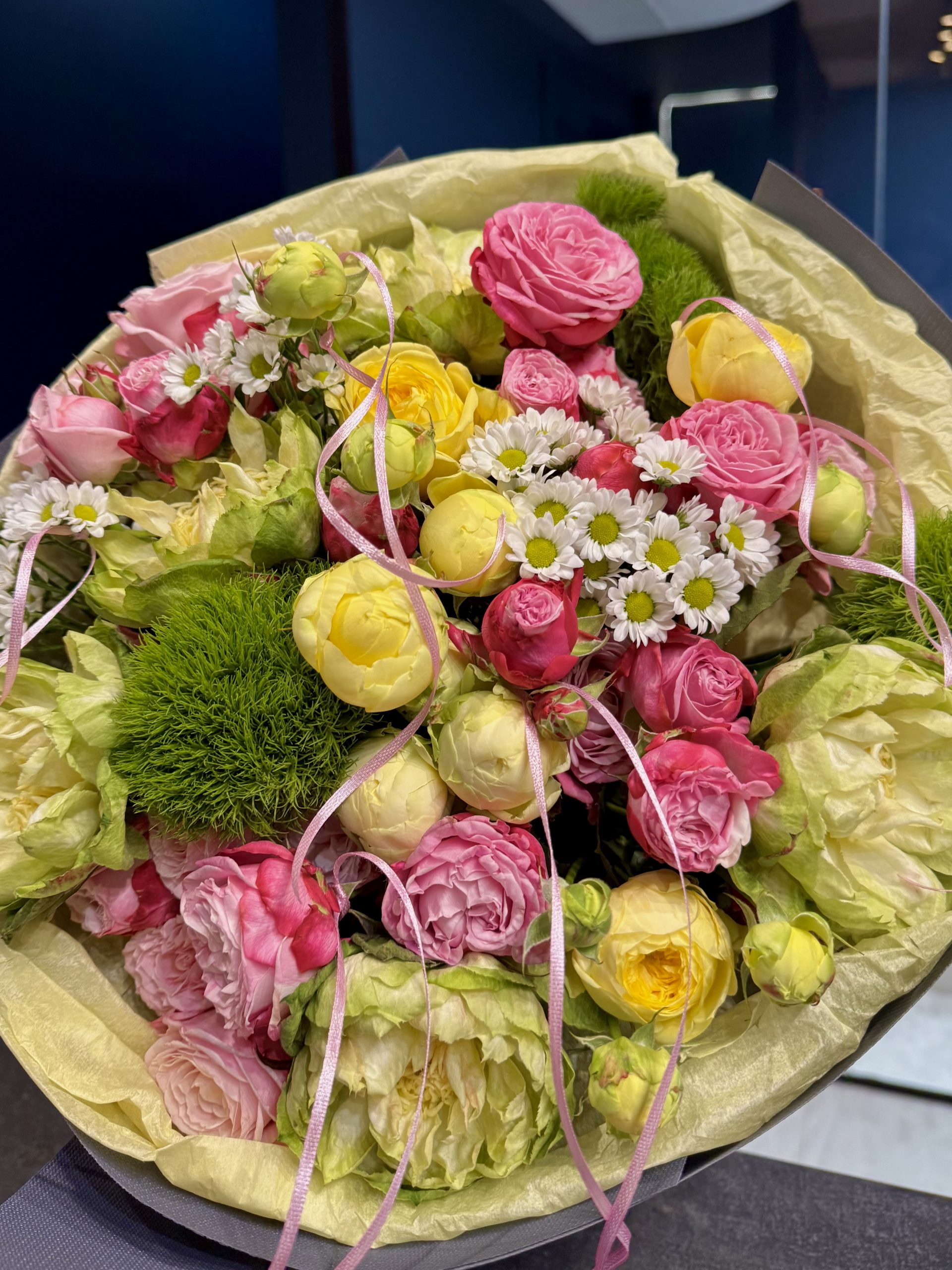 Ten wyjątkowy bukiet zachwyca harmonijnym połączeniem delikatnie żółtych róż gałązkowych, świeżej zielonej róży Veggie oraz subtelnych różowych różyczek. Jasna, pastelowa kolorystyka nadaje kompozycji lekkości, świeżości i naturalnej elegancji. To doskonały prezent na urodziny, rocznicę lub jako piękny gest bez okazji. Bukiet emanuje spokojem, ciepłem i ponadczasowym stylem.